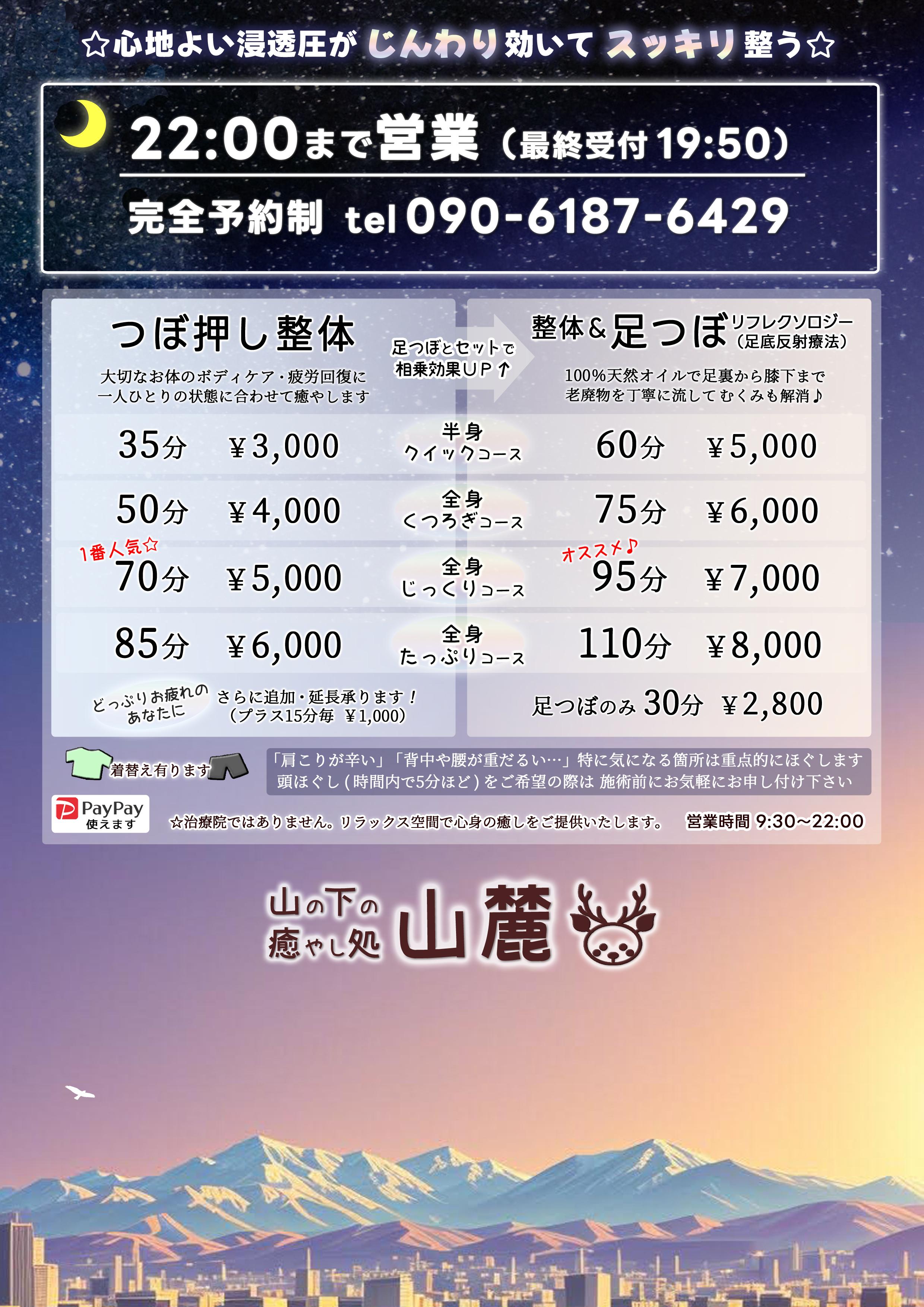 いつも『癒やし処 山麓』をご愛顧いただき、誠にありがとうございます!